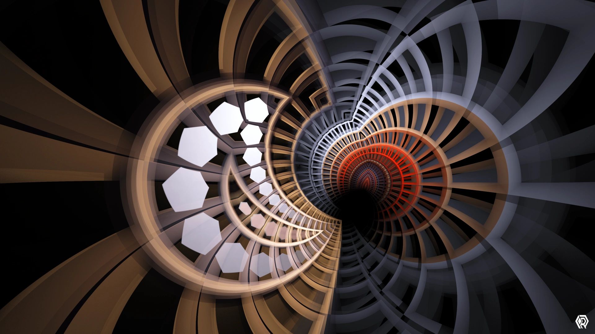 These five renders represent (in a loose, fractally way) the evolution of machine systems from rigid patterns, to flexible patterns, to parallelized patterns, to dynamic systems, and finally, to a reality-shaping singularity.